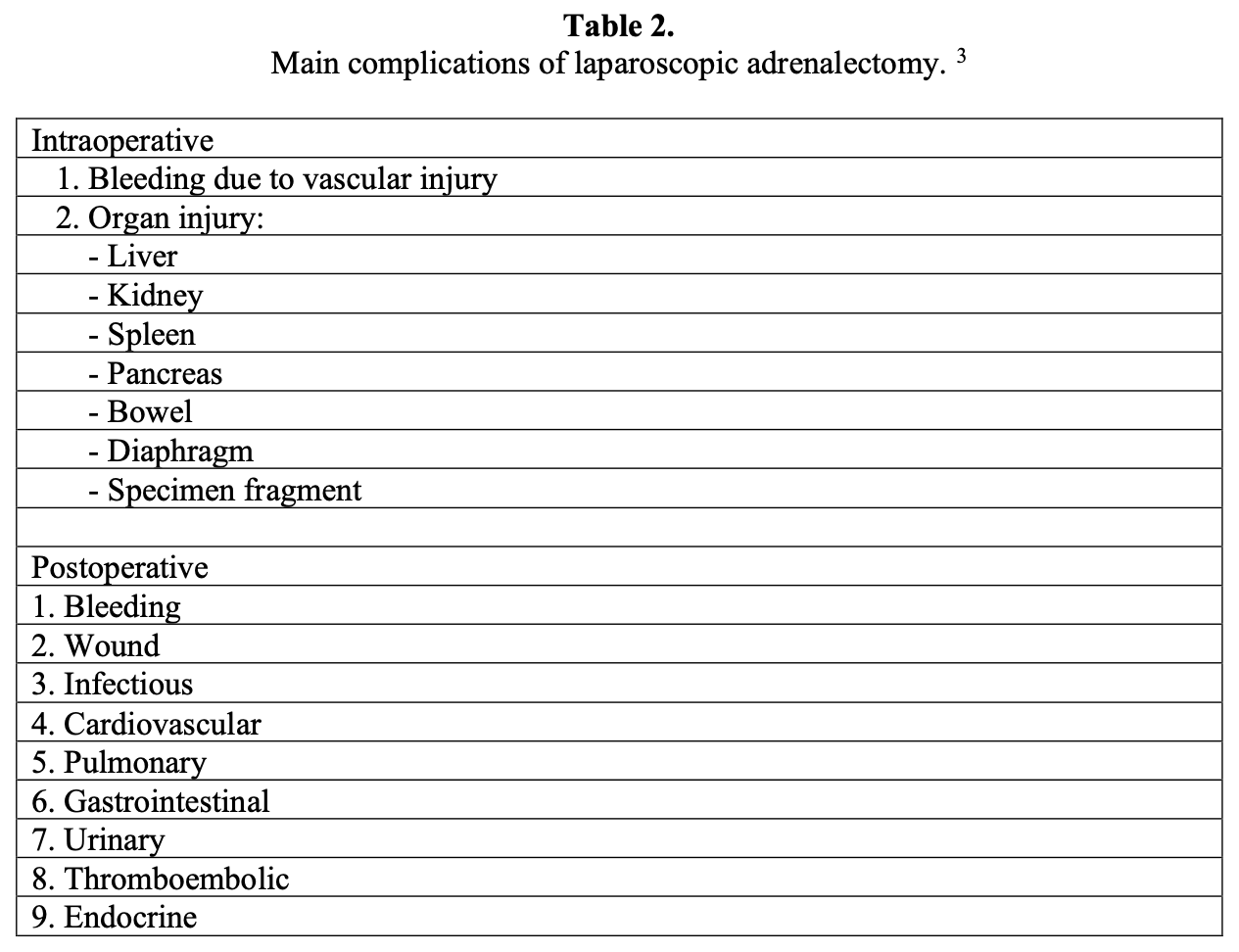 - Lee J, El-Tamer M, Schifftner T, et al. Open and laparoscopic adrenalectomy: analysis of the National Surgical Quality Improvement Program. J Am Coll Surg. 2008 May;206(5):953-959; discussion 959-61. Epub 2008 Mar 24.