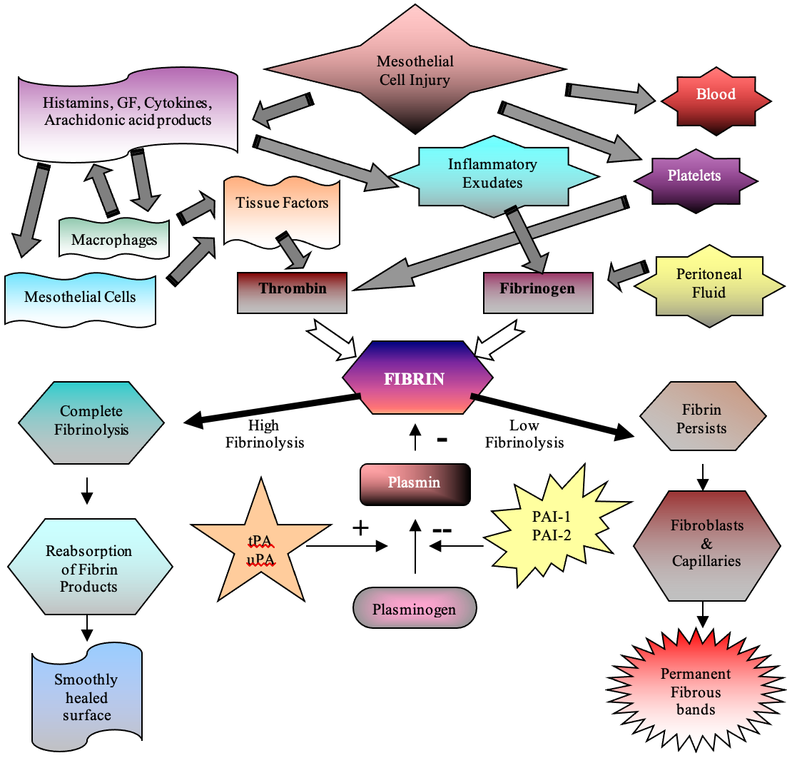 Liakakos T, Thomakos N, Fine PM, Dervenis C, Young RL. Peritoneal adhesions: etiology, pathophysiology, and clinical significance. Recent advances in prevention and management. Digest Surg. 2001;18(4):260-273.