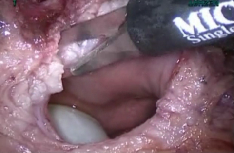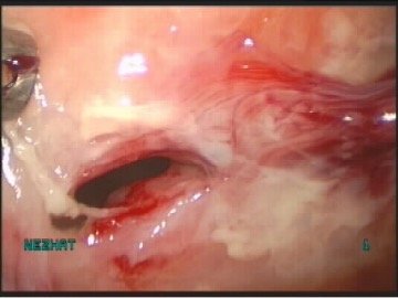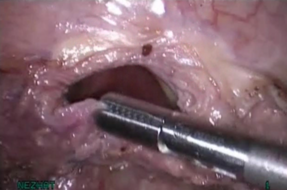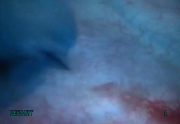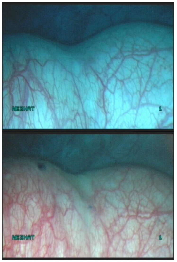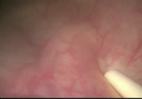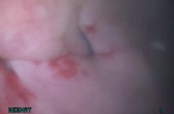 The bladder must be inspected for suture or mesh, adhesions, erythema, edema, lesions, perforation or masses.6Bladder injury is often grossly apparent to the surgeon, but cystoscopy can aid diagnosis in more subtle injuries (Figure 5). Although cystoscopy can detect most of the bladder injuries, devascularization, denervation, or thermal injuries are not identifiable by cystoscopy. The rate of missed diagnoses of bladder injury in women, who underwent benign gynecologic surgery with routine intraoperative use of cystoscopy, was estimated by systemic review of 17 retrospective studies, to be 0.8 per 1000 procedures.1 Bladder injuries indentified should be repaired by identification of the ureters, by mobilization, vascularization and closure followed by bladder rest. (Figure 5, Figure 6, Figure 7, Figure 8, Figure 9, Figure 10, Figure 11).