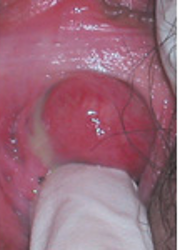 Clinical symptoms of urethral diverticulum range from being asymptomatic to recurrent urinary tract infection, incontinence, dysuria, hematuria, finding a vaginal mass (Figure 2), frequency and urgency, urinary retention, and pain. The presenting symptoms depend on the size of the diverticulum. The small sizes are associated with pain and recurrent urinary tract infections and larger sizes more commonly cause incontinence.