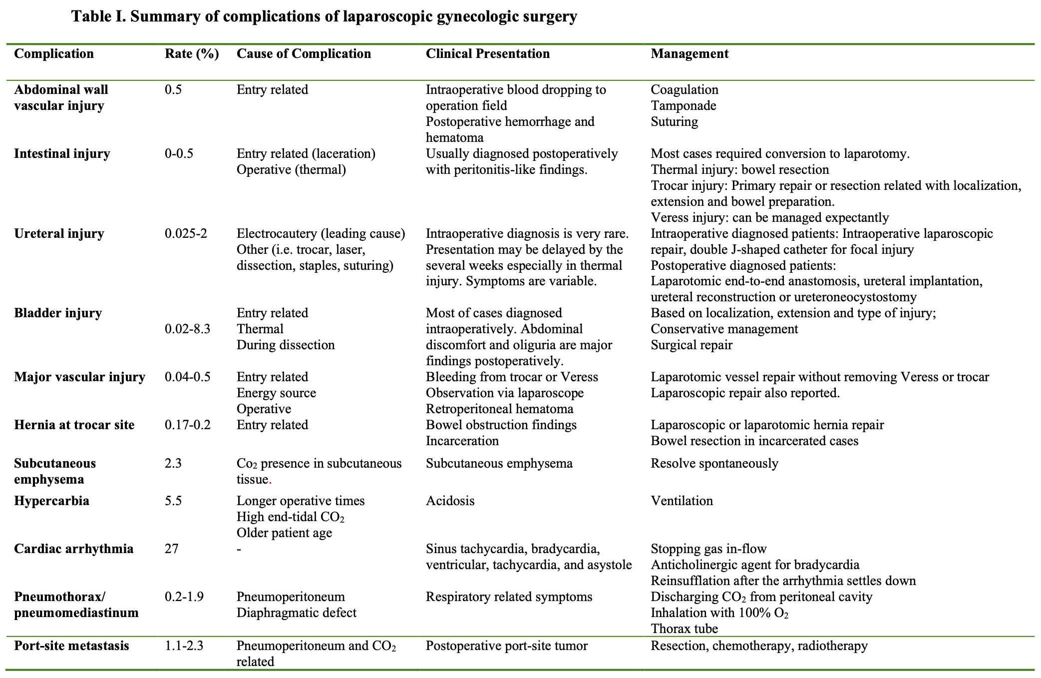 - Magrina JF. Complications of laparoscopic surgery. Clin Obstet Gynecol. 2002;45:469-480.
